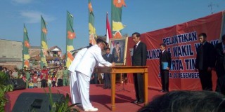 Gubernur DKI Jakarta, Joko Widodo meelantik Wali Kota dan Wakil Wali Kota Jakarta Timur, Kamis (20/12/2012) di lapangan bola Kampung Polo Jahe, Kelurahan Jatinegara, Cakung, Jakarta Timur