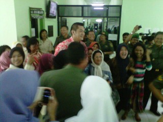Dengan refleks, Doni Kusuma meladani permintaan keluarga pasien dan pegawai untuk berfoto bersama. Satu persatu bahkan ada yang bergerombol, langsung meminta foto bersama.
