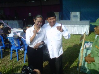 Bupati Muaraenim, Muzakir Sai Sohar bersama istri usai mencoblos di TPS 1 Kelurahan Air Lintang, Kecamatan Muaraenim, Rabu (5/3/2013).