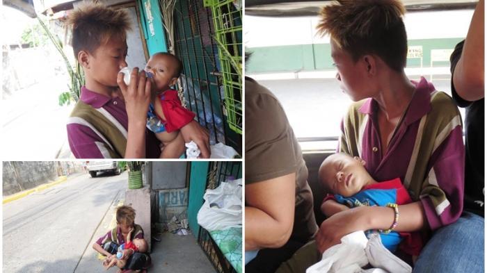 Seorang remaja laki-laki yang berusia sekitar 15 tahun harus merawat sendiri adiknya yang berusia lima bulan.