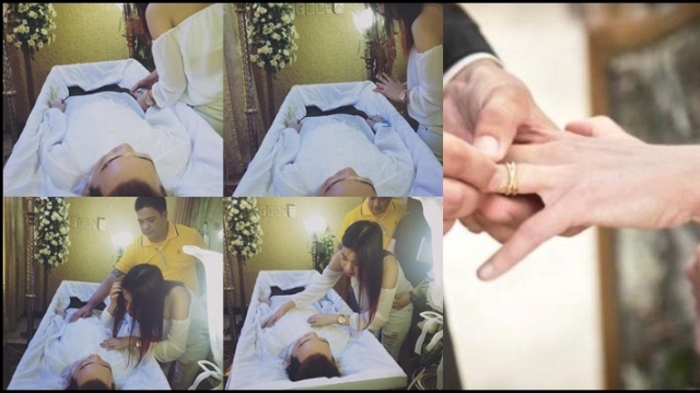 Dilansir Viral4real, Minggu (27/9/2015), lewat akun Facebooknya, wanita bernama Tel Madrona memposting momen saat dirinya "melangsungkan" pernikahan dengan mendiang tunangannya yang telah ditempatkan dalam peti mati.