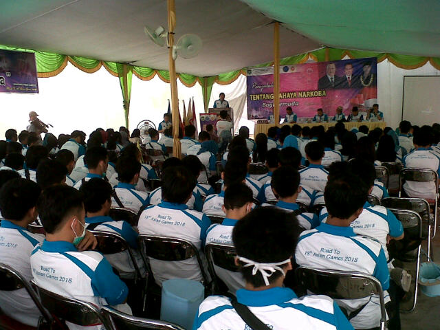 Dalam sambutannya Kadispora Prov Sumsel H Ahmad Yusuf MSi sekaligus pembicara menjelaskan dihadapan para mahasiswa baru tentang bahaya narkoba.