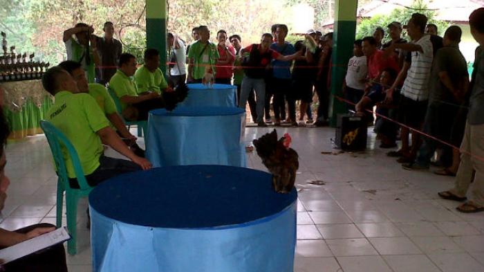 Sementara puluhan pemilik ayam bersorak- sorai dan bertepuk-tepuk tangan dari luar supaya ayam mereka mau berjalan dan berlenggak-lenggok seperti pragawati.