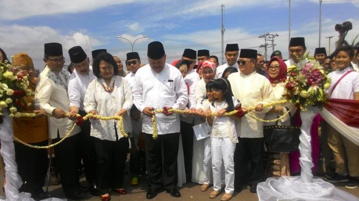 Gubernur Sumsel Alex Noerdin mengajak sekeluarga besarnya meresmikan jalan Noerdin Pandji yang merupakan akses jalan dari bandara menuju pangeran ayin, Sabtu (16/1/2016).