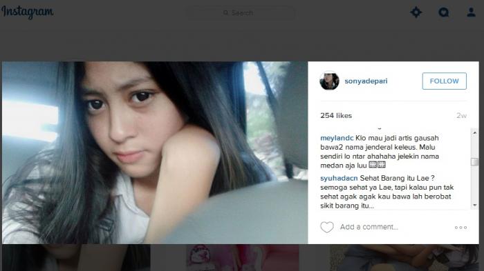 Akun instragram Sonya yang juga mencatut nama belakang Irjen Arman Depari yaitu @Sonyadepari menjadi sasaran bully.