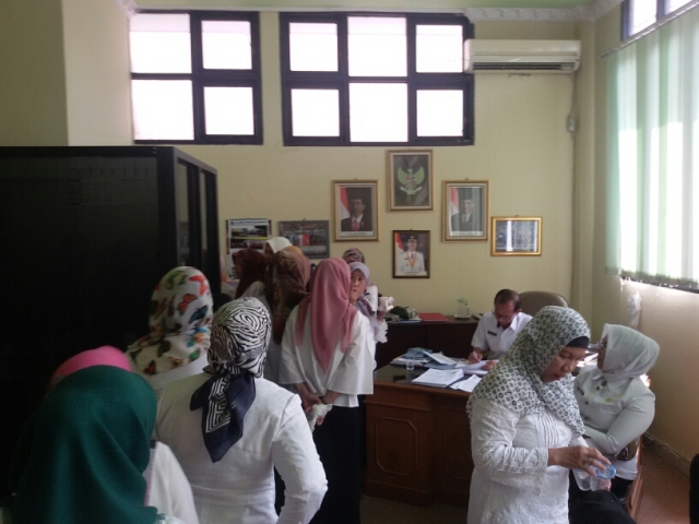 Pemeriksaan tes urine yang digelar sejak pukul 08.00 wib pagi dan direncanakan akan selesai tepat jam 12.00 siang ini, mewajibkan para kepala sekolah