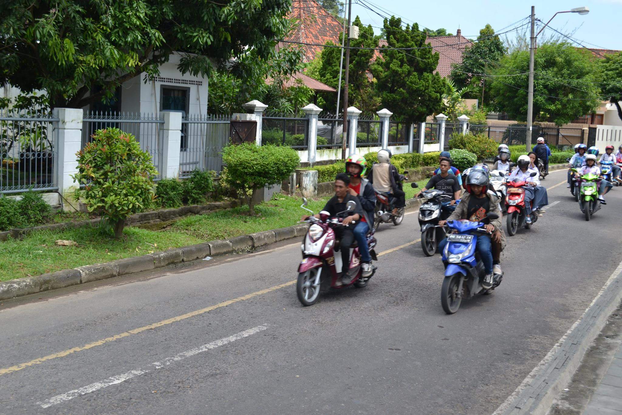Bahkan beberapa dari mereka pun ada yang berteriak 'Lulus' sembil berdiri di atas sepeda motor.
