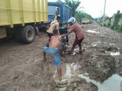 " Parah jalannya pak. Seperti kubangan kerbau. Kapan jalan kami diperbaiki. Kami bosan setiap hari main dengan lumpur," kata Alex tokoh pemuda masyarakat Desa Rimba Terap.