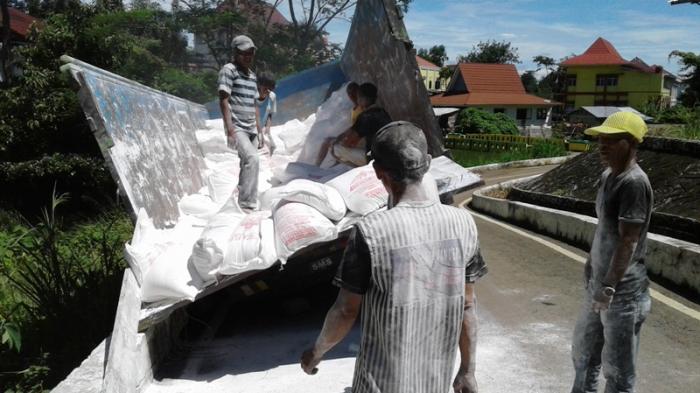 Truk Pengangkut 20 Ton Sagu Nyaris Masuk Jurang
