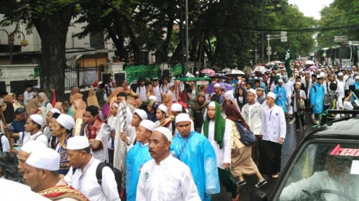 Pada sekitar pukul 12.40 WIB, gelombang massa yang berjalan kaki dari arah patung kuda terlihat memadati Jalam Medan Merdeka Selatan. Di bawah rintik hujan, mereka bergerak dengan berjalan kaki menuju arah Tugu Tani.