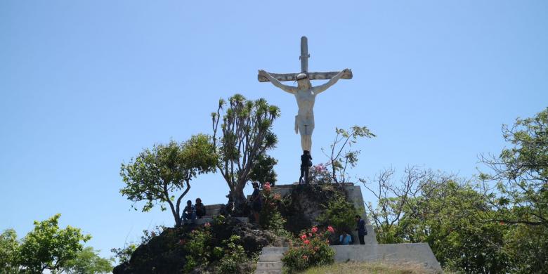"Patung Yesus memberkati itu menghadap ke arah timur. Yang patung salib menghadap ke utara. Hari Sabtu dan Minggu ini biasa jadi tempat wisata untuk foto-foto," kata Ruben kepada KompasTravel di sela-sela kegiatan di Monumen Kristus Raja, Desa Olilit Timur, Kecamatan Tanimbar Selatan, Kabupaten Maluku Tenggara Barat, Kamis (8/12/2016).