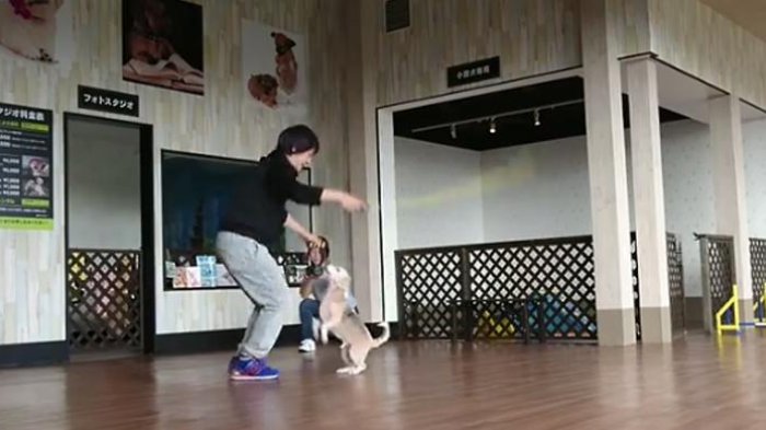 Purin, anjing jenis beagle berusia 11 tahun bersama majikannya Makoto Kumagai, sukses melakukan 58 lompatan tali dalam semenit.