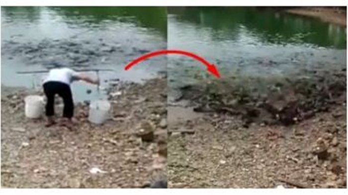 Dilansir dari Viral4real, Selasa (7/3/2017), dalam video tersebut, seorang wanita terlihat menuangkan sesuatu di atas batu dekat tepi kolam.