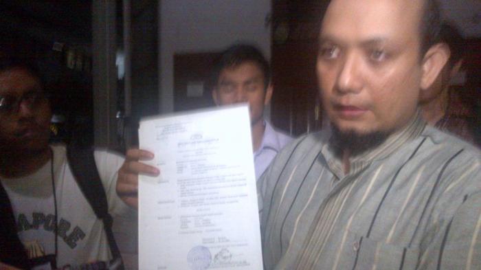 Novel disiram air keras setelah melaksanakan ibadah shalat subuh di masjid yang berada di sekitar kediamannya di kawasan Kelapa Gading, Jakarta Utara, Selasa pagi.