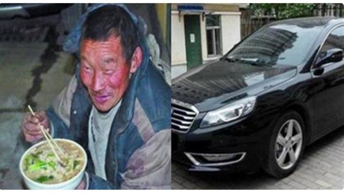 Ternyata, anak muda dalam mobil ini adalah anak dari gelandangan tersebut.