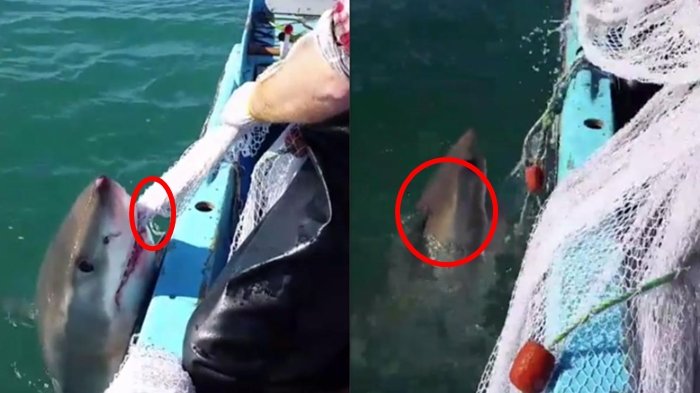 Rupanya, ikan hiu tersebut tertaring dengan jaring penangkap ikan.