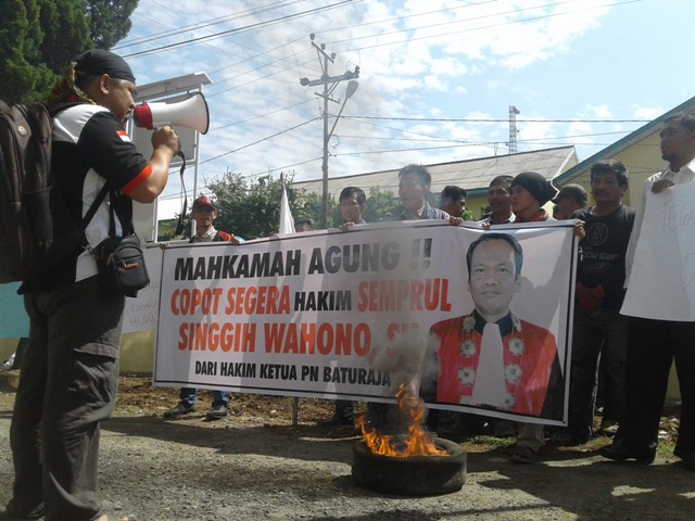 “Kami minta Singgih Wahono mundur dari Ketua Pengadilan Baturaja dan segera angkat kaki dari sini,” teriak Koordinator Aksi Josi Robet.
