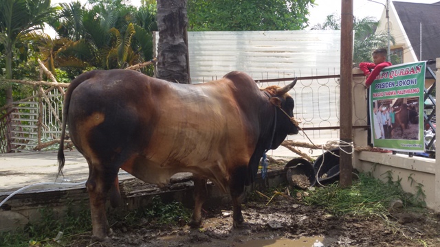 Tak terkecuali, Presiden Joko Widodo yang juga ikut berkurban dengan memberikan seeokor sapi di Masjid Taqwa Palembang.