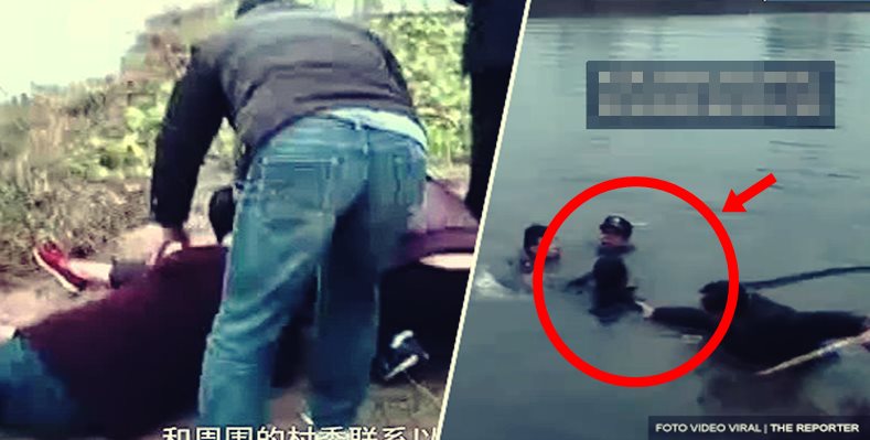 Video kejadian itu viral di media sosial China menunjukkan sekumpulan orang ramai menggerumuni mayat korban di sungai.