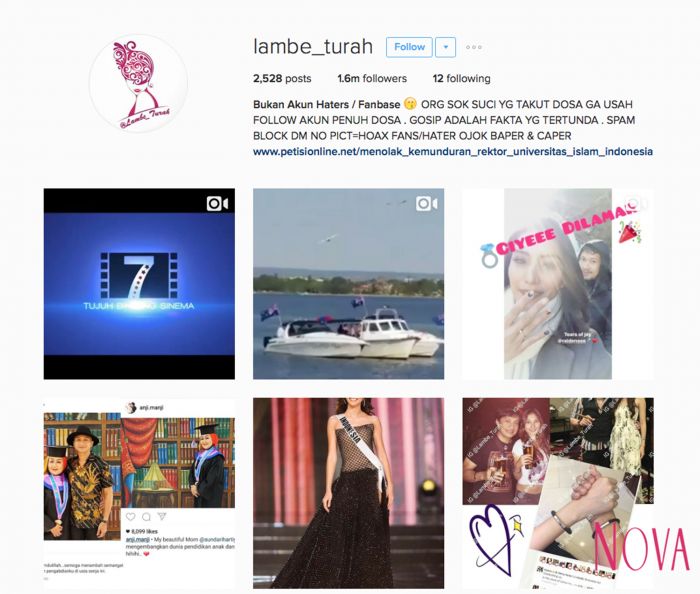 Akun gosip instagram Lambe Turah, @lambe_turah mendadak menghilang.Beberapa kali NOVA mencoba melakukan penelusuran d