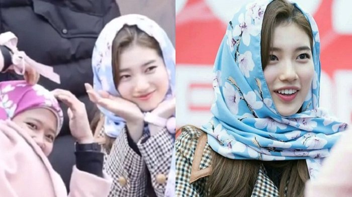 Video Detik-detik Artis Korea Bae Suzy Pakai Hijab Pemberian Fans Indonesia, Netizen: Cantiknya!
