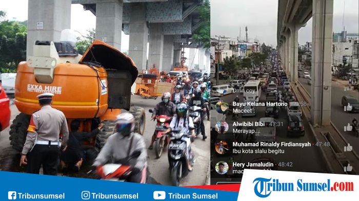 Kemacetan cukup parah ini mendapat perhatian dari netizen saat TribunSumsel.com melakukan siaran langsung via facebook live.