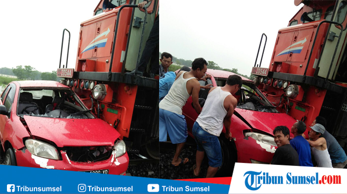 Nasib Naas Dialami Pria di OKU Timur Ini, Sedan Miliknya Tersangkut di Rel dan Dihantam Babaranjang