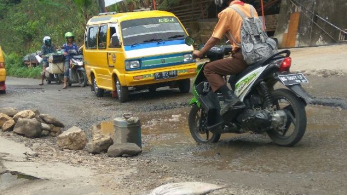 Ia pun harus ekstra hati – hati karena kondisi jalur yang rusak dan berlubang.