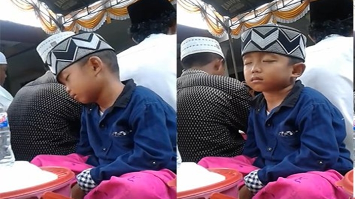 Dua video yang memperlihatkan seorang anak kecil mengantuk waktu mengkuti tahlil menjadi viral di Facebook