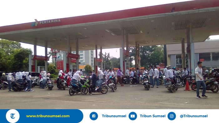 Terlihat kumpulan siswa SMA berkumpil di eks SPBU Demang Lebar Daun yang akan melakukan konvoi.