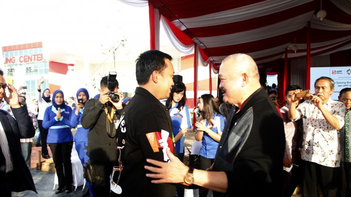 Acara serah terima dihadiri FKPD Provinsi Sumsel, Managing Direktur Asia Pulp and Paper (APP) Sinar Mas, Saleh Husin, Direktur APP Sinarmas, Suhendra Wiriadinata, serta Direktur Lembaga Pengelola Dana dan Usaha Keolahragaan, Agus Hardja Santana