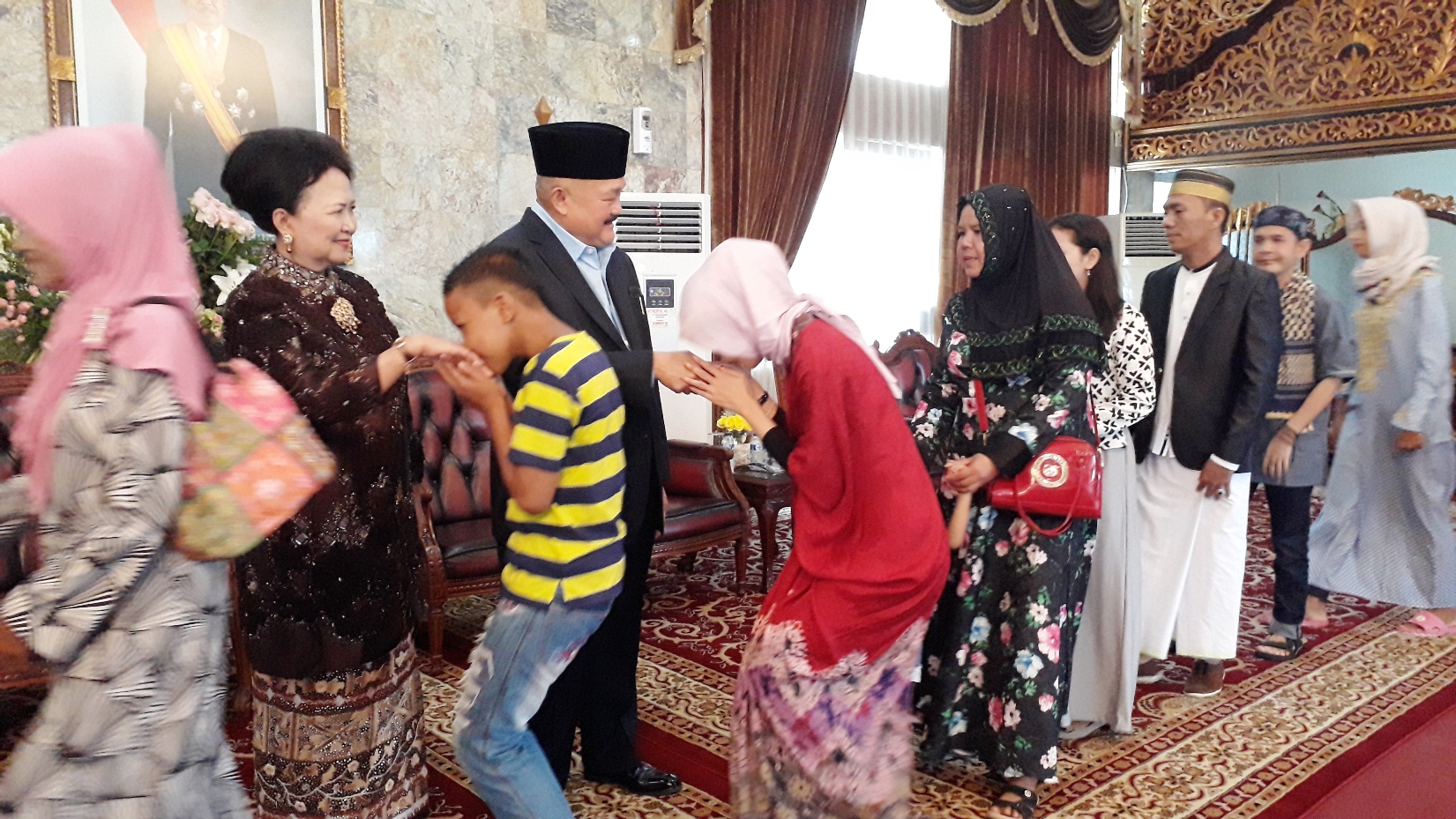 Open house Hari Raya Idul Fitri 1439 H di Griya Agung Palembang, Jumat (15/6/2018).