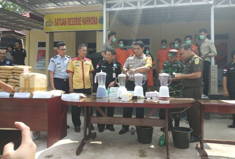Tercatat ganja sebanyak 34 kg, ekstasi sebanyak 2.655 butir dan sabu-sabu sebanyak 1.9 kg dimusnahkan dengan cara diblender dan dibakar.
