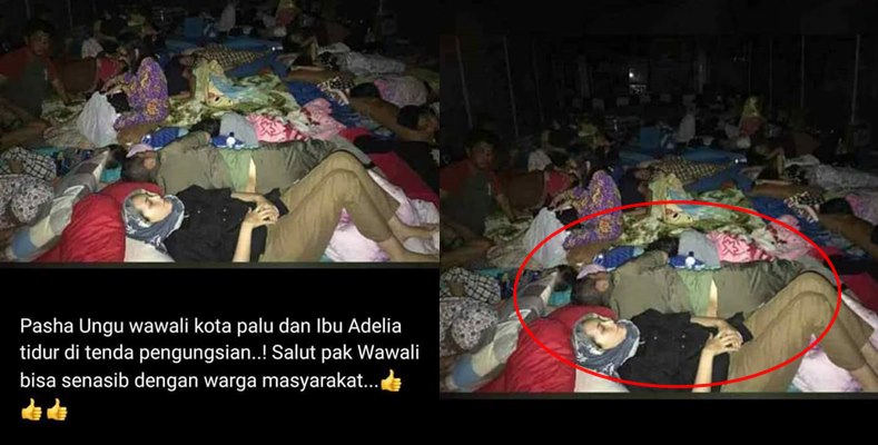 Keduanya terlihat membaur bersama dengan korban gempa dan Tsunami lain di sebuah lokasi pengungsian.