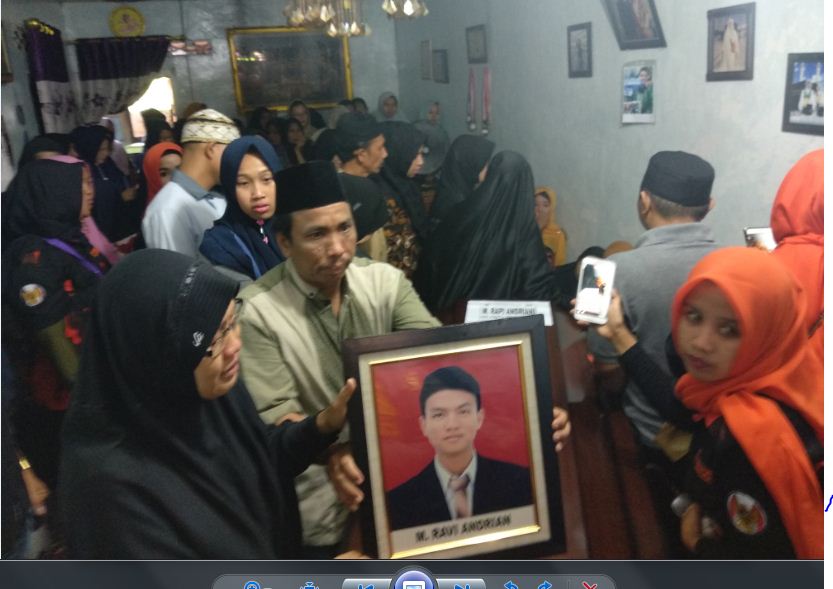 Sepanjang perjalanan Epi Syamsul Komar dan Yenni kedua orang tua almarhum Rapi dan kedua adiknya tak henti-hentinya menangis, bahkan mereka harus ditenangkan oleh pihak keluarga.