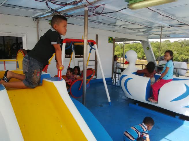 " Coba bandingkan biayanya, jauh lebih hemat, tak antri antri lagi, lagian diatas kapal juga cukup nyaman, semua sarana dan prasana termasuk permainan anak anak sudah ada disana," tegasnya.