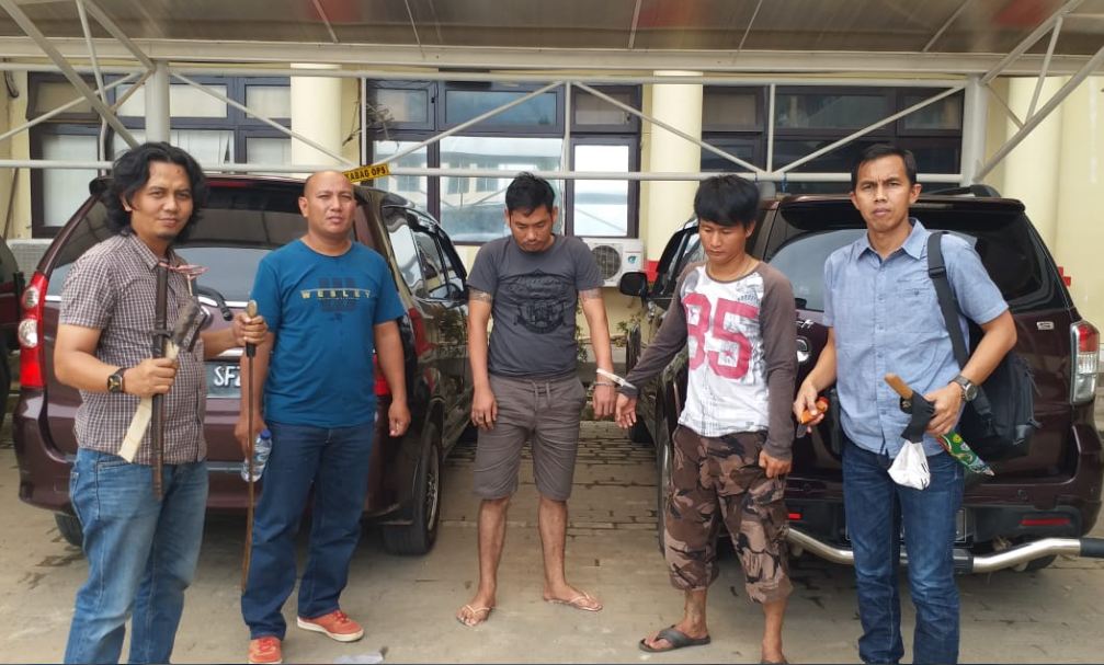 Keduanya ditangkap petugas Unit Pidum (Pidana Umum) dan Tekab 134, saat berada dikawasan tak jauh dari TKP (tempat kejadian pekara).