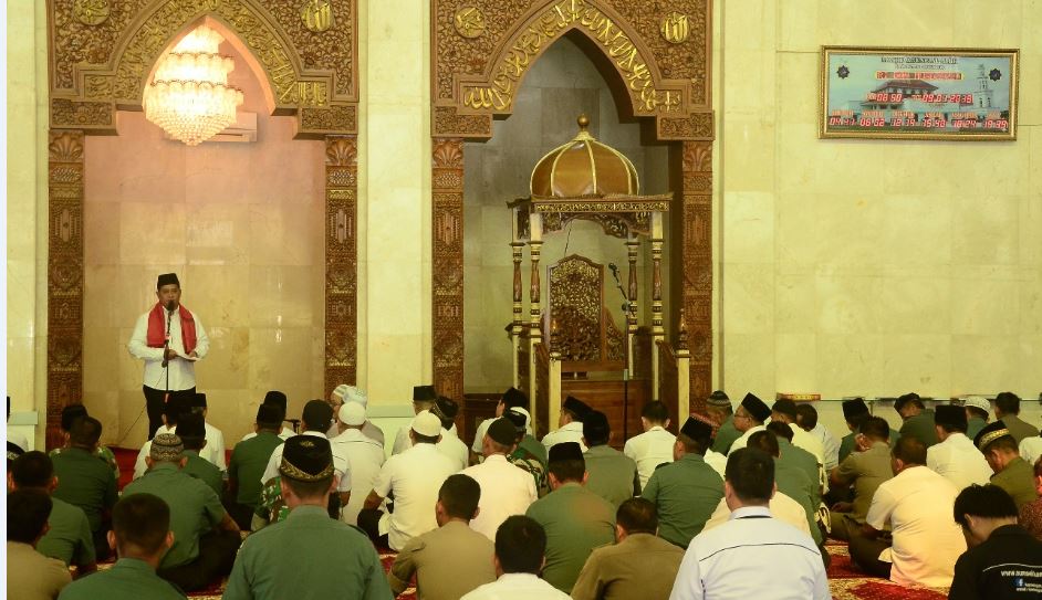 Kegiatan meningkatkan keimanan dan ketakwaan Aparatur Sipil negara (ASN) dan Tenaga Harian Lepas (THL) dilasanakan dilingkungan Pemkab Banyuasin di Masjid Agung Al- Amir komplek Pemerintahan Kabupaten, Rabu (9/1/2019).