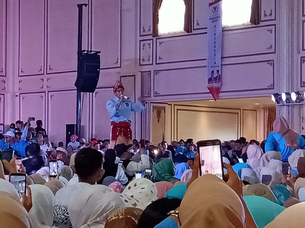 Sandiaga Salahudin Uno Calon Wakil Presiden (Cawapres) nomor urut 2 tiba di The Sultan Convetiom Center Palembang, Jum'at(12/4/19) disambut ribuan pendukung yang memenuhi gedung.
