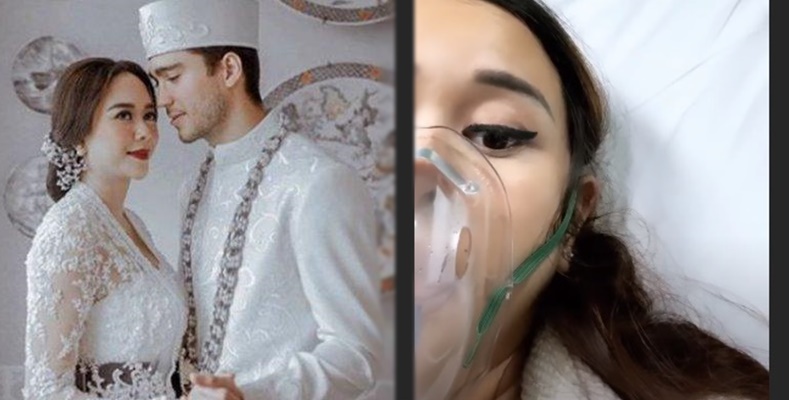 Dalam foto tersebut Aura Kasih tengah memakai alat bantu pernapasan pada bagian hidungnya.
