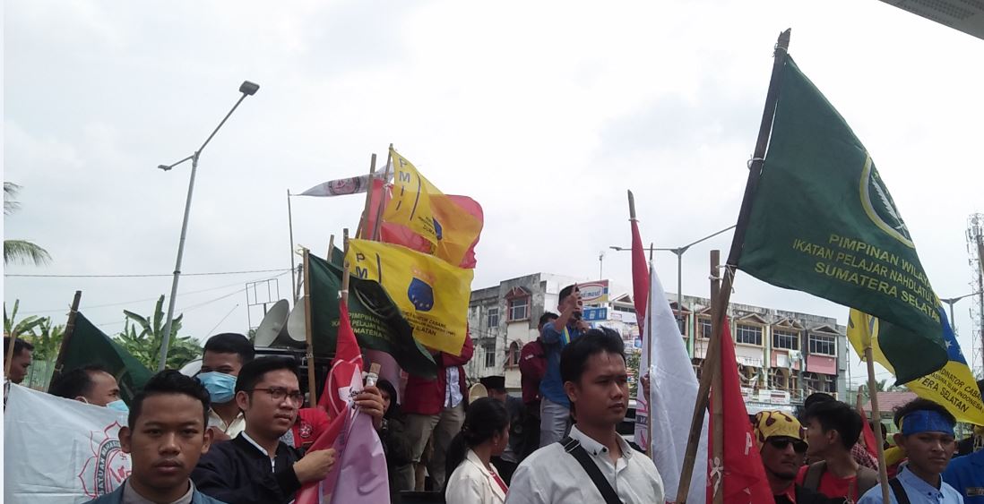 Dalam aksi yang dihadiri Ketua PMII Sumsel, Husin Rivanda, Alsyahdad, Ketua Gerakan Mahasiswa Nasional Indonesia Sumsel, Arif Parawita Iktan Pelajar NU (IPNU), M Iqbal.
