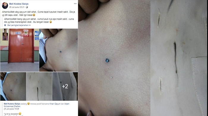 Ia mengunggah beberapa foto keadaan sang anak yang di tusuk menggunakan pensil hingga menembus dada sang anak.