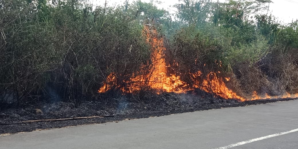 Untungnya kebakaran terjadi di lahan yang berada di tepi jalan. Ini membuat pihak Pemadan Bencana Kebakaran (PBK) mudah untuk memadamkan api.