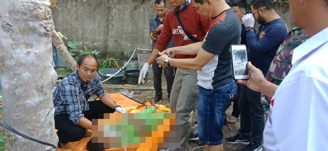 Warga yang mendengar teriakan suami korban, beramai-ramai mendatangi lokasi kejadian.