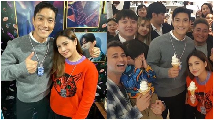 Personel Super Junior, Siwon Choi sengaja datang ke SM Town untuk menyambut hangat pasangan idola dari Indonesia itu.