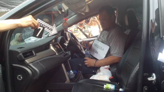 Tersangka Yudhi dan korban Apriyanita tetap berada di dalam mobil di depan ATM.