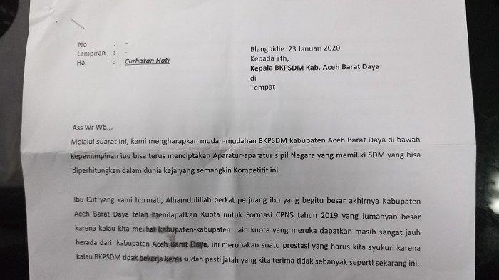 TRIBUNSUMSEL.COM.COM, BLANGPIDIE - Peserta CPNS Ini Curhat kepada Panselda Lewat Sepucuk Surat, Simak Curahan Hatinya