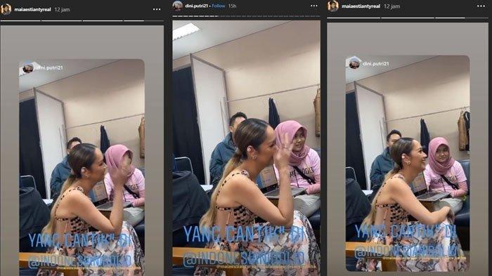 Maia Estianty tampak ber-makeup tepat di belakang mereka.