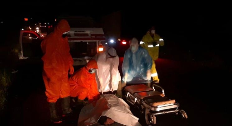 Kernet Fuso Meninggal Mendadak di Muba, Petugas Mengevakuasi Gunakan APD Lengkap