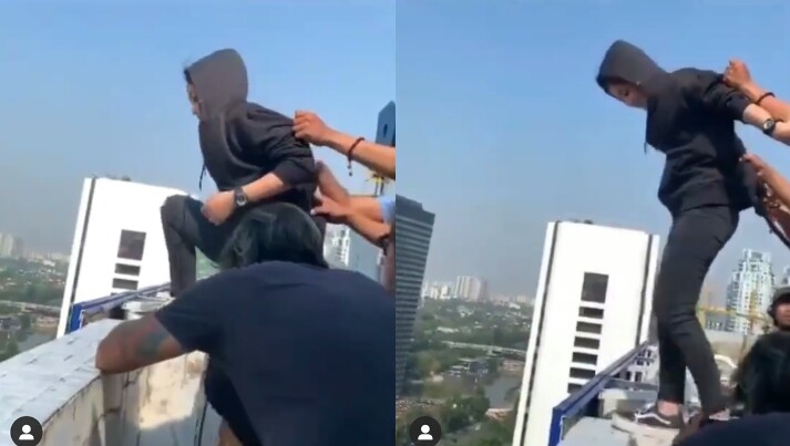 Berdiri di lantai atas gedung pencakar langit, masih ingat adegan ketika Cut Syifa memerankan tokoh Erika di web series Omen?